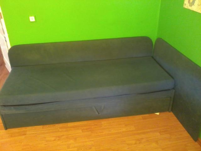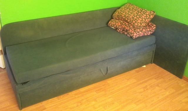 Mėlinos spalvos sofa lova, naudota, turi keleta dėmių.