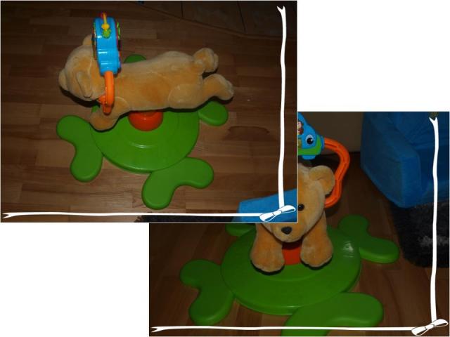 nuostabus zaislas, vaikutis gali sokineti ant jo ir tuo pat metu apsisukti 360 laipsniu kampu :DDD vaikams labai smagu, zypsi svieseles groja muzikeles zaislas kaip naujas.....