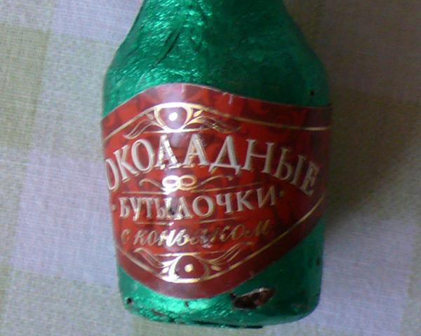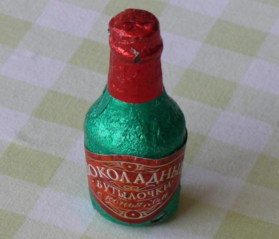 Senas senas, bet gerai išsilaikęs, šokoladinis buteliukas su konjaku iš Baltarusijos. Valgyt nerekomenduoju, bet į kolekciją labai tinkamas. Kai kur įdrėksta folija.