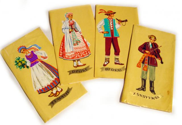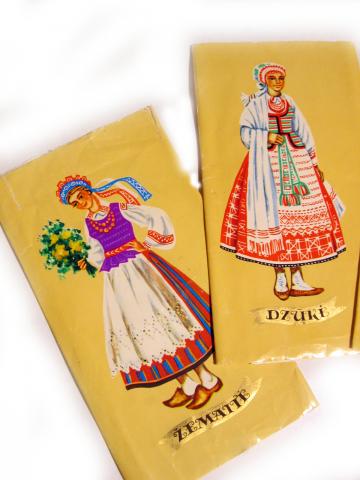 Sokolado ipakavimo popieriuku kolekcija tautinis kostiumas