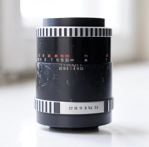 Naudotas objektyvas CARL ZEISS JENA SONNAR 135mm f/3.5 ZEBRA, M42 sriegis.