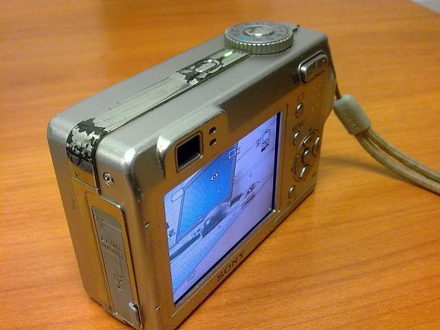 Puikiai veikiantis fotikas. 5.1 mega pixels. Statosi dvi paprastos AA baterijos. Metalinis korpusas.