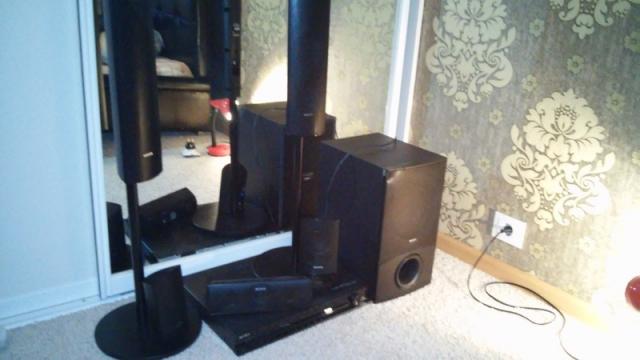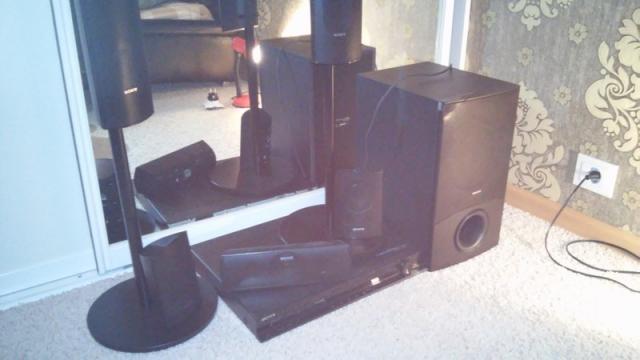 Parduodu SONY vaizdo ir garso sistema 1000 vatu,dvi priekines pastatomos koloneles,centrine kolonole,dvi kabinamos galines koloneles ir subwooferis/bosteris,gera garso ir vaizdo kokybe ira keli defektukai,bet jie niekuo nera susije su vaizdo ar garso trancliavimu kaina 350 lt kaina negalutine