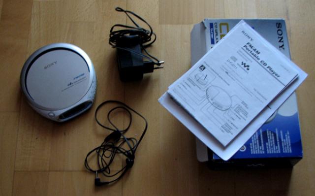 Groja CD-R/RW audio diskus (MP3 ne), yra FM/AM radijas. Komplekte originalios ausinės ir adapteris jungimui į rozetę (tuomet nenaudojamos baterijos). Aptrintas, bet techninė būklė gera.