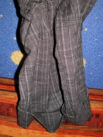 pilki sortai iki keliu. languoti, siuvineti sidabriniu siulu, imituotom kisenem sonuose. dydis parasytas 36, bet tinka ir dydziu didesnem.