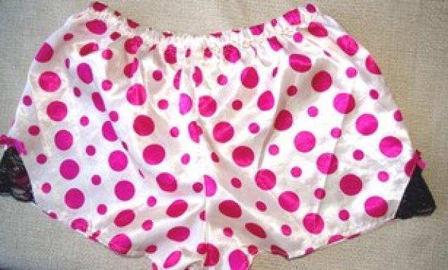 Žavus šortukai - atlasiniai. Su rožiniais kaspinėliais. Ir juodais nerinkais. Nemainau :} Dydis 36-38 taip rašoma etiketėje.