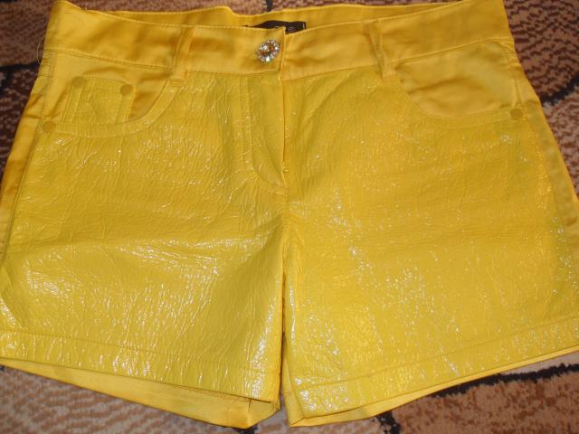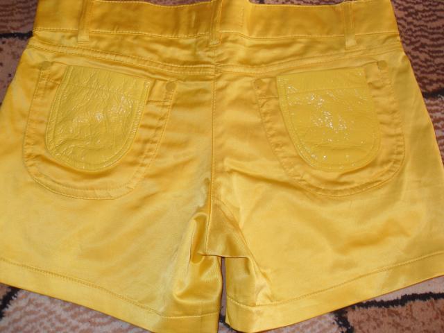 Ryskiai geltoni sortukai is prekio odos imitacijos i kitoj pusej atlasinei.