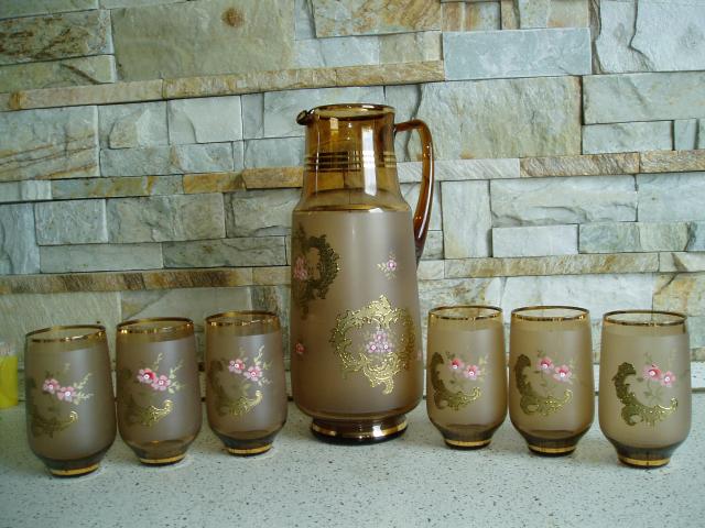 Bohemia.Ąsočio aukštis 28 cm,taurių 11cm.Paauksavimai iškilūs