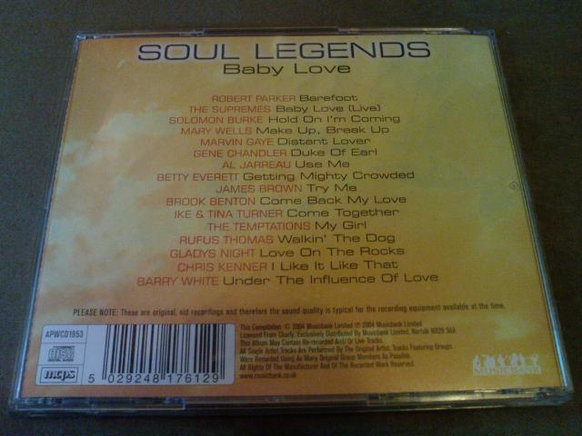soul legends - baby love cd, tracklistas nuotraukoje.