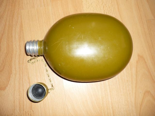 Sovietinės kariuomenės gertuvė. Aliuminė.1964m. Nesulankstyta, neperdažyta. Viduje nuo ilgo stovėjimo atsiradę aliumo oksido korozijos pėdsakų.