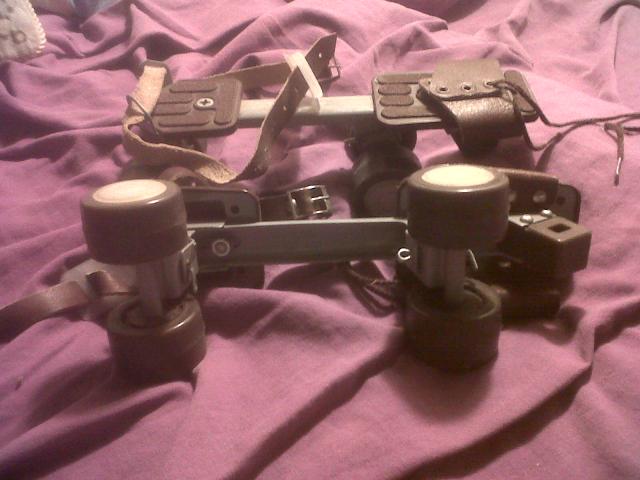 Beveik nauji, su dirželiais prisegami prie bet kokio bato. Dydis reguliuojamas gali tikti beveik bet kokio dydžio pėdai.