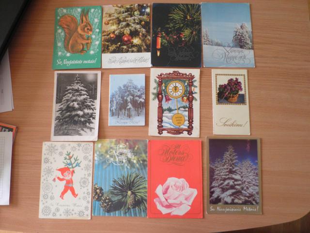 Sovietinių laikų atvirukai su sveikinimais lietuviškais žodžiais. Atvirukai panaudoti (su sveikinimais). Jei yra noras galiu atsiųsti fotografijas aukštos kokybės geresniam matymui. Būklė įvairi
