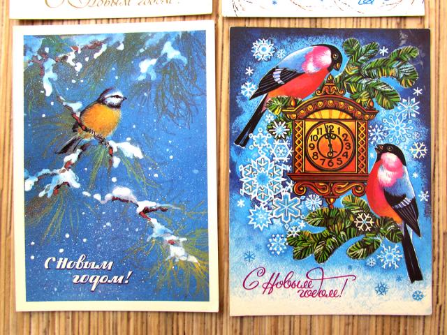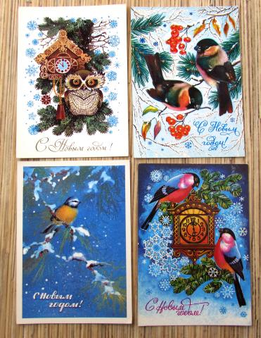 Sovietiniai naujametiniai kalėdiniai atvirukai su paukščiais