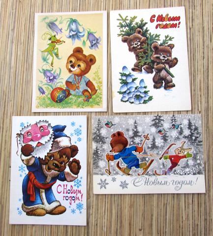 Sovietiniai naujametiniai, kalėdiniai ir kt. atvirukai su meškiukais