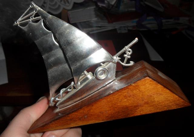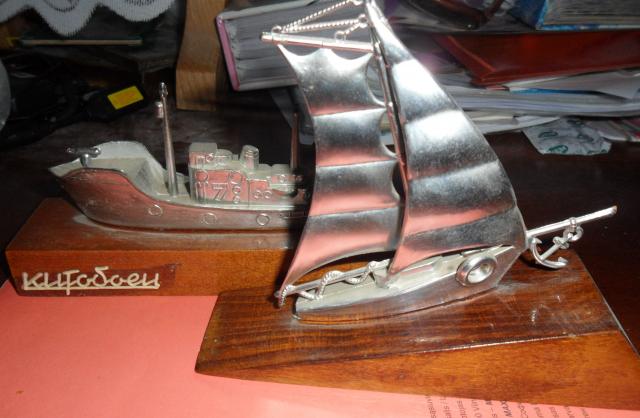 Sovietiniu laivu sumazintas variantas. Pritvirtinta prie medienos.