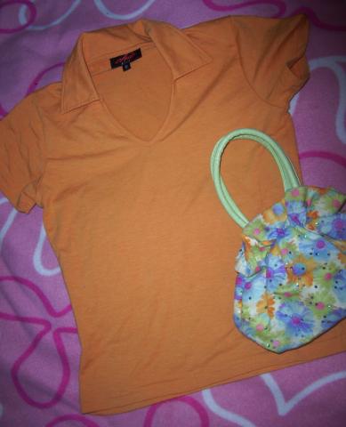 maikutė v formos ryskiai oranzine, kaip nauja ir rankinukas, mazyte kosmetine ar kas tik norit;] tiktu jaunai panelytei.