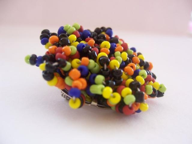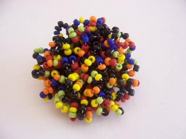 Spalvota sagė. Įdomi ir žaisminga. bet gražiai atrodo ir prie dalykinės aprangos. Rankų darbo. Dydis: 3.5 - 4cm