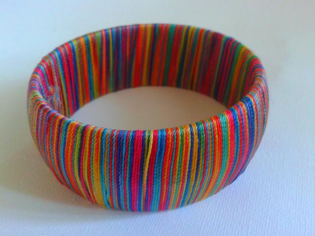 Plati apyrankė, aptraukta spalvotais siūlais. Labai puikus aksesuaras vasarai.