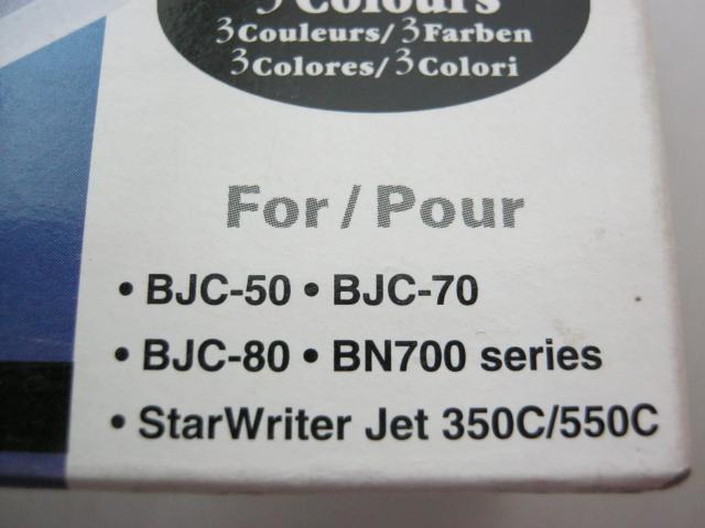 Spalvoti CANON spausdintuvų dažai. Tinkami modeliai: BJC-50 BJC-70 BJC-80 BN700 SERIES StarWriter Jet 350c/550c