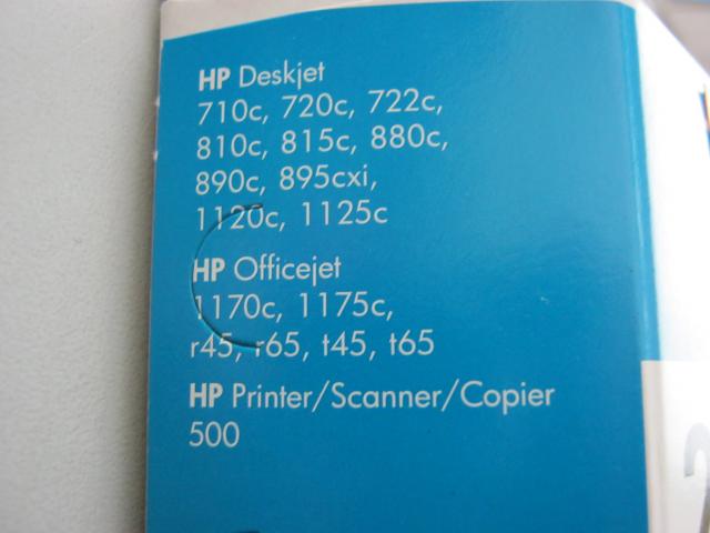 Spalvoti dažai HP spausdintuvams. Tinkami modeliai: Deskjet 710c, 720c, 722c, 810c, 815c, 880c, 890c, 895cxi, 1120c, 1125c. HP officejet 1170c, 1175c, r45, r65, t45, t65. HP printer/scanner/copier 500