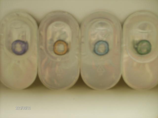 Nauji spalvoti kontaktiniai lešiai, spalvos : aqua (žalia), žydra, ruda, violetine, nešiojimo laikas 3 mėnesiai, galiojimas iki 2014 metu.B.C. 8,6, diametras 14mm. Pora lęšių-50lt., skystis su konteineriuku - 20lt. Perkant lesius, skysti ir konteineriuka - siuntimas nemokamas :) P.S. yra ir su dioptrijom - teiraukites :) -kaina ta pati