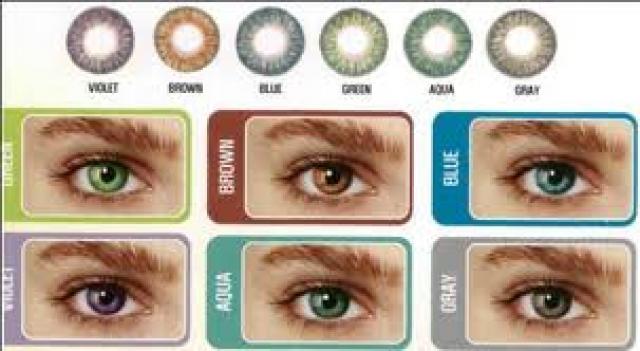 Spalvoti kontaktiniai lesiai - zali, zidri, rudi