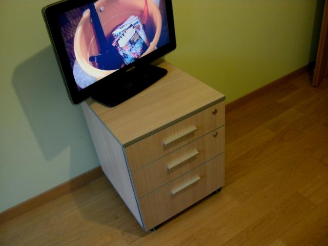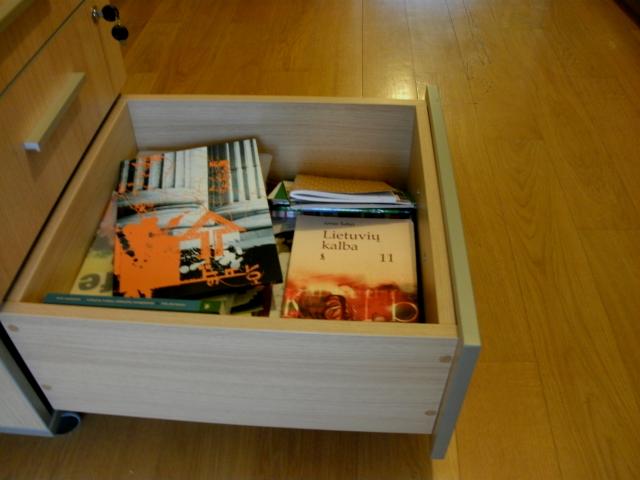Spintelė/Komoda Šviesi spalva, pilkos matinės rankenos. Pagaminta pagal individualų užsakymą, metų senumo, nėra jokių defektų ar pažeidimo žymių. Ilgis: 54cm Plotis: 50cm Aukštis: be ratukų – 57cm, ratukų aukštis –6cm Trys stalčiai. Aukščiai po 13cm, 17cm ir 24cm. Ypatumai:KAINA TOKIA DIDELĖ DĖL STALČIŲ SISTEMOS: AUTOMATINIS ATSIDARYMAS, VOS PATRAUKUS Į SAVE IR AUTOMATINIS UŽSIDARYMAS PASTŪMUS, BEI FIKSACIJA. 1.Integruotas švelnaus stabdymo mechanizmas 2. Pilno ištraukimo guoliniai bėgeliai