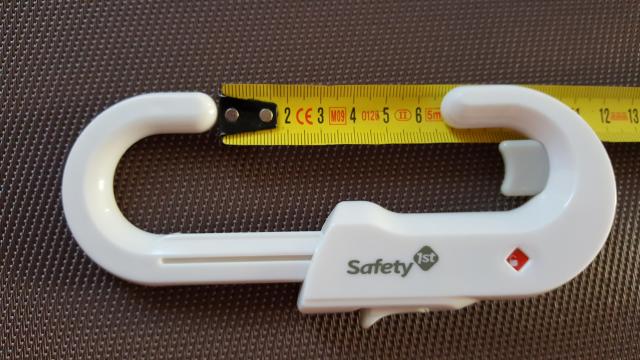 Spintelės durelių užraktas Safety first. Max atstumas tarp rankenėlių 6,5 cm.