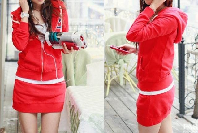 Dvi spalvos. Išmatavimai: megztukas: ilgis 56cm, biustas 86cm, pečiai 36cm; sijonas: ilgis 28cm, liemuo 68cm. Medžiaga: medvilnė.
