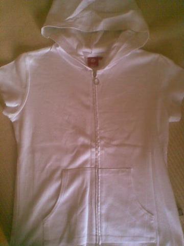 Myleta ir saugota. baltos spalvos. Dydi raso lyg apie 13-14m, tinka ir apie 15m mergaitei. Trumpom rankovem, su kisenem, su uztrauktuku, kapisonu.