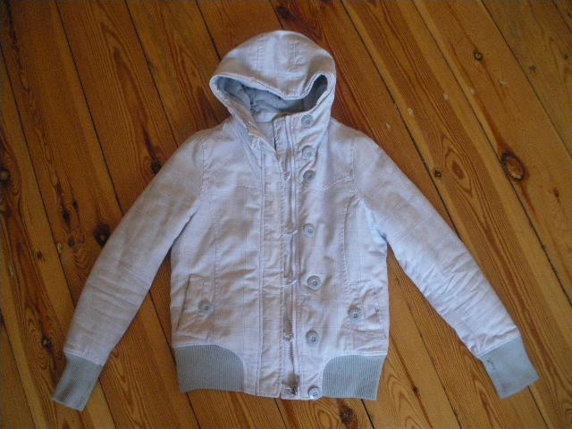 Sportinio stiliaus balta "Fishbone" striukė sudefektu rankogalyje. Dėvėta porą mėnesių.