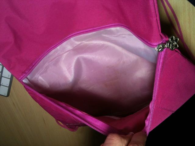 Ružavos spalvos, mergaitiškas, sportinis krepšys. Su papildomu skyriumi.