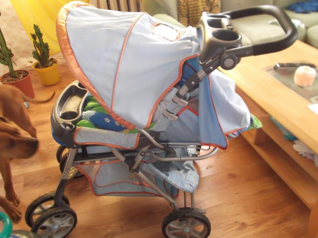 Lengvas sportinis vežimėlis. Trys padėtys. Veikia visos jo funkcijos. Didelis krepšys.