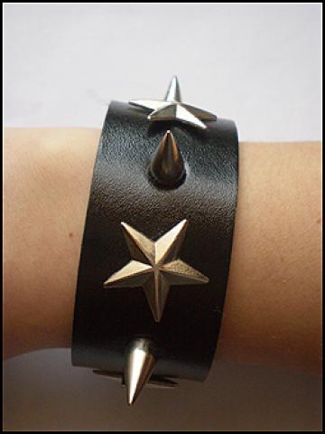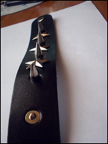 Nenešiota juoda spygliuota apyrankė su žvaigždutėmis. Du galimi užsegimai.