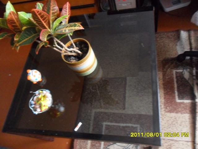 Staliukas, neaukštas su juodu stiklu.