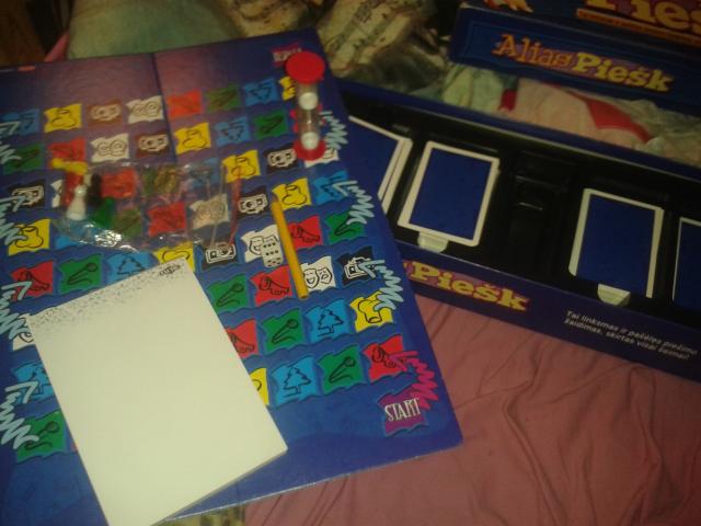 Stalo zaidimas Alias piesk. Nera vieno piestuko ir taisykliu Skubiai parduodu nes dulka lentynoje. Galima zaisti kaip ir paprasta Alias :) Tiesiog pasitelkite vaizduote. Kaina galima paderinti proto ribose.