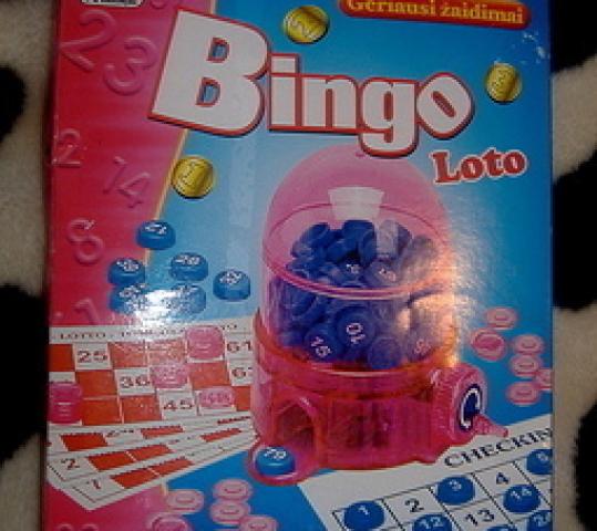 stalo zaidimas "bingo loto" su dezute, tik nera bingo masinos virsutines dalies dangtelio, taciau zaisti netrugdo, zetonai sukant rankenele neiskrenta