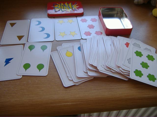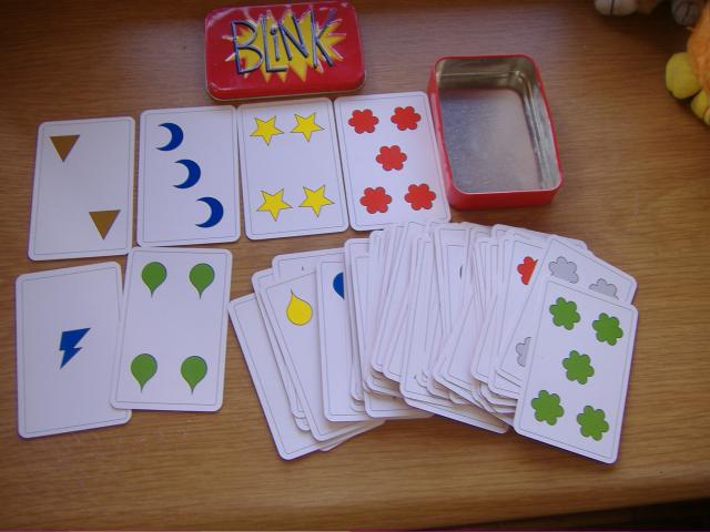 60 kortu. Yra sesiu tipu figureles: gele zvaigzde menulis trikampis zaibas lasas. Kiekvienos figureles - po 10 kortu (ivairiu spalbu). Zaidimas metalinej dezutej. Dezute standartiniu kortu dydzio.
