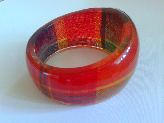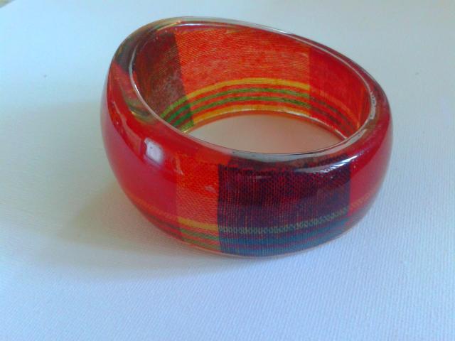 Asimetriška apyrankė, kieto plastiko, su geometriniais spalvotais raštais