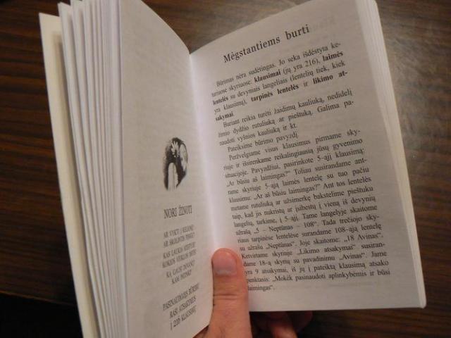 iš serijos "Numerologija", vos keletą kartų vartyta, praktiškai nauja. Viduje taip pat yra 216 įdomių klausimų (ar eiti į pasimatymą?, ką gausiu dovanų? ir t.t.), į kuriuos atsakymą surasite šios knygelės pagalba. Tikrai smagu paskaitinėti :]
