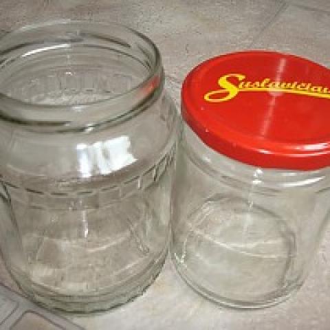Švarūs, skaidrūs, užsukami stiklainiai (be užsukamų dangtelių). Kaina 5-7cnt/vnt. Tinka Eurams (ir kitai valiutai) laikyti/užmarinuoti.