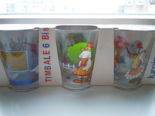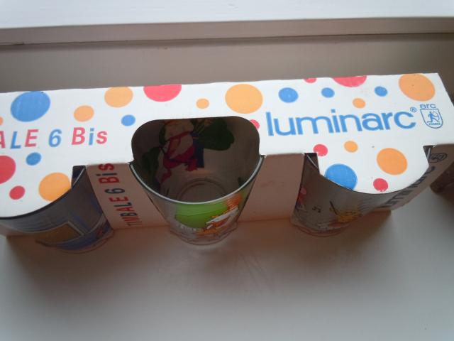 6 vnt naujų, neišpakuotų, žaismingų stiklinių. Luminarc firmos. Aukštis - 8,5 cm ir skersmuo viršuje - 6,5 cm