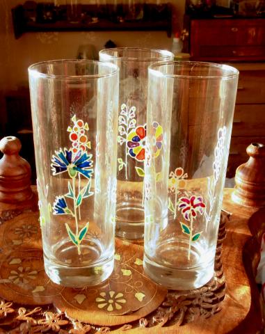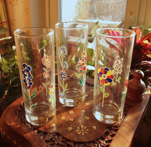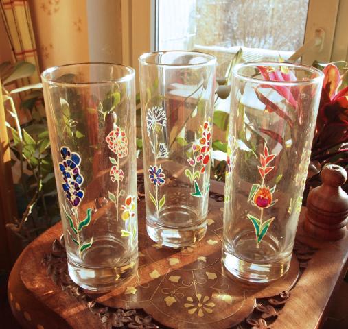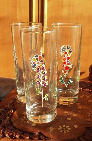 Aukštos dekoruotos stiklinės