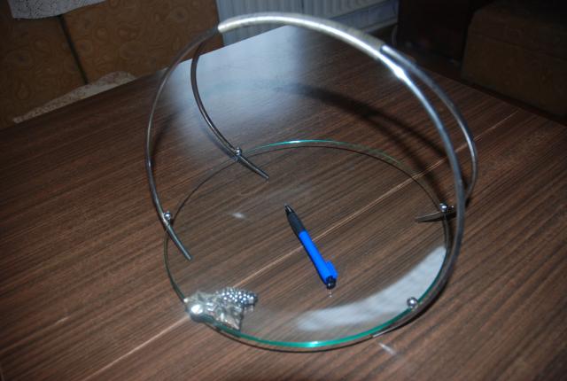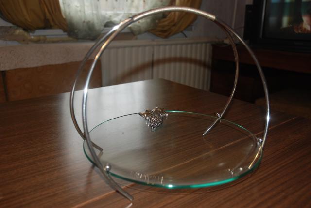 kokybiškas stiklinis krepšelis vaisiams su metaline rankena ir papuošimu