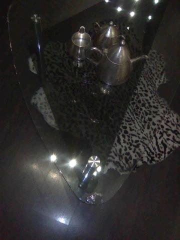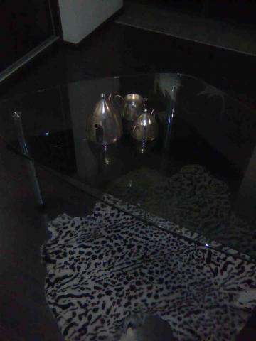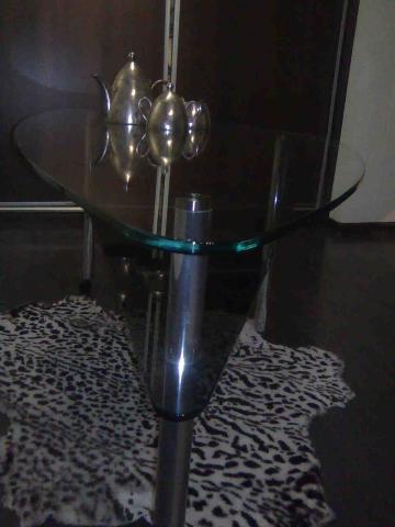 Žurnalinis kavos staliukas, dviejų pakopų, stiklas/metalas. Ilgis 144, plotis 71, aukstis 54 cm. Trikojis, su ratukais. Nedidelis įskėlimas kairiąjame kampe (žr. nuotr.). Būklė gera.