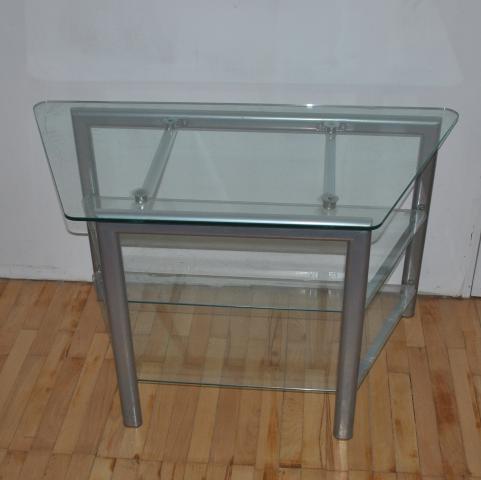 Naudotas stiklinis staliukas Išmatavimai: aukštis 56.5, pirma lentyna 11cm nuo žemės, antra lentyna 33cm nuo žemės, plotis 56 siauroji pusė, 95 plačioji pusė, gylis 50cm Tel 862561976
