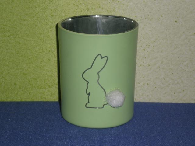 Stiklinyte su Velyku zuikuciu ir pukine uodegele. Interjero akcentas