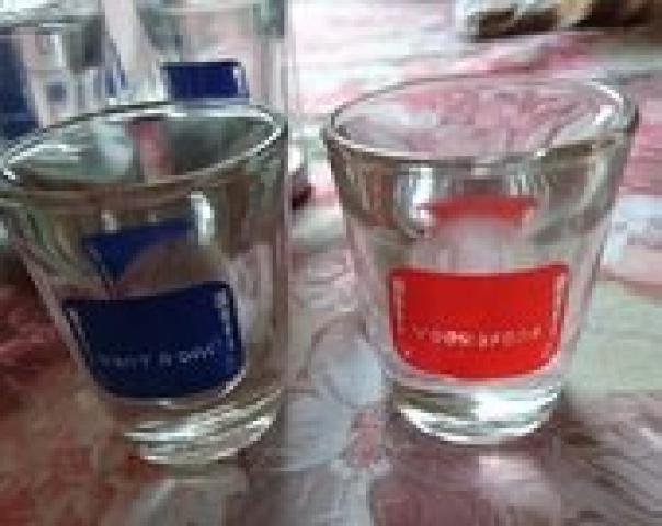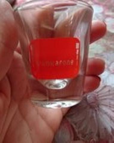 KAINA SUTARTINE. 10 vienetu stikliuku. Storo stiklo. Su uzrasais "vodkafone" ir "want a one?" + Pasto islaidos