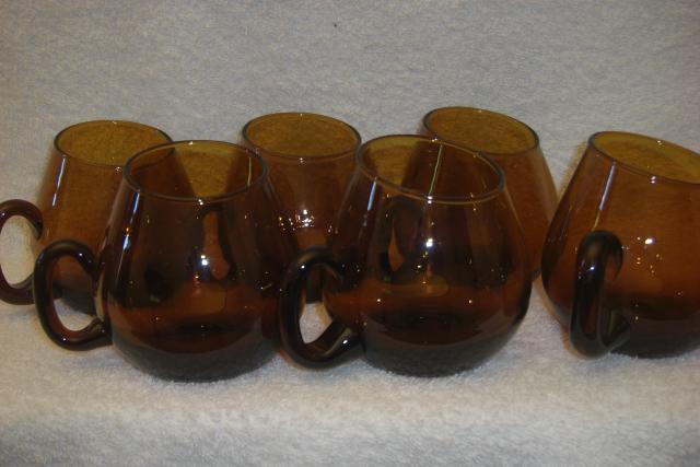 6 vienetai, rudo stiklo puodeliu, viršuje nuožulniai " nupjauti" ....gan dideli -apie 0,5 ltr