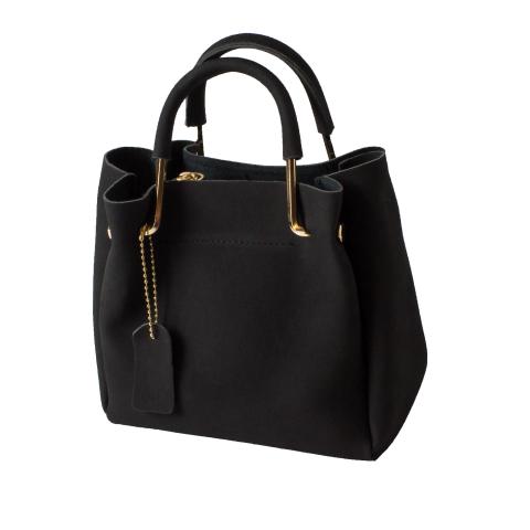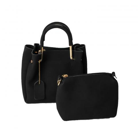 Stilinga dirbtinės odos rankinė su metalinėmis rankenėlėmis. Taip pat yra reguliuojamas dirželis. Viduje yra vienas bendras skyrius, kuriame sudėsite svarbiausias smulkmenas. Kartu pridedama mini kosmetinė - delninė. Rankinės matmenys: Plotis - 19 cm, Aukštis - 17 cm, Gylis - 10 cm.